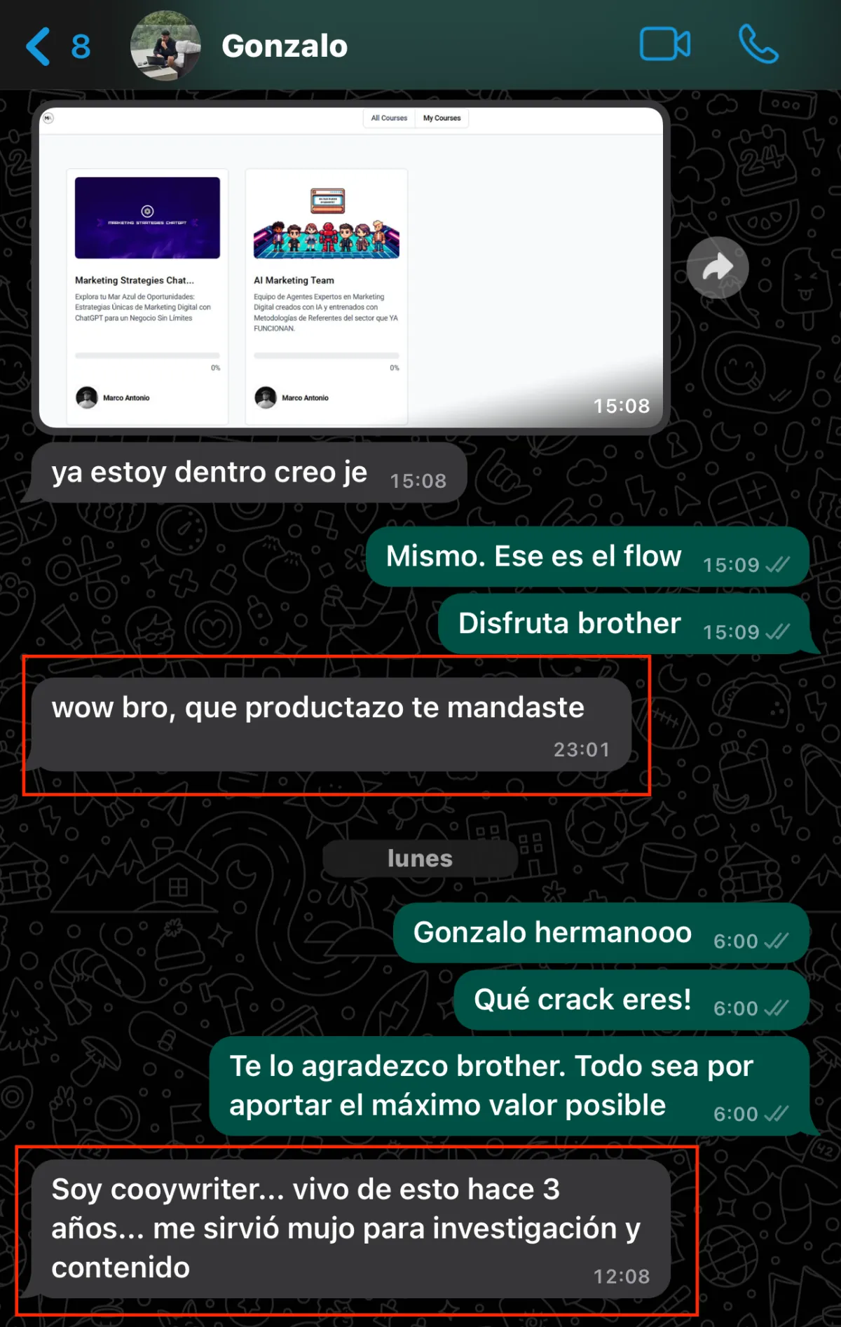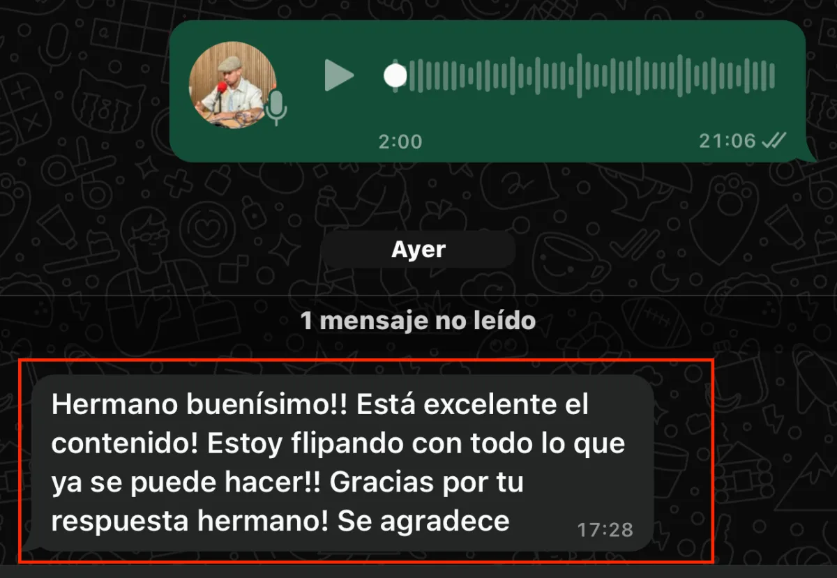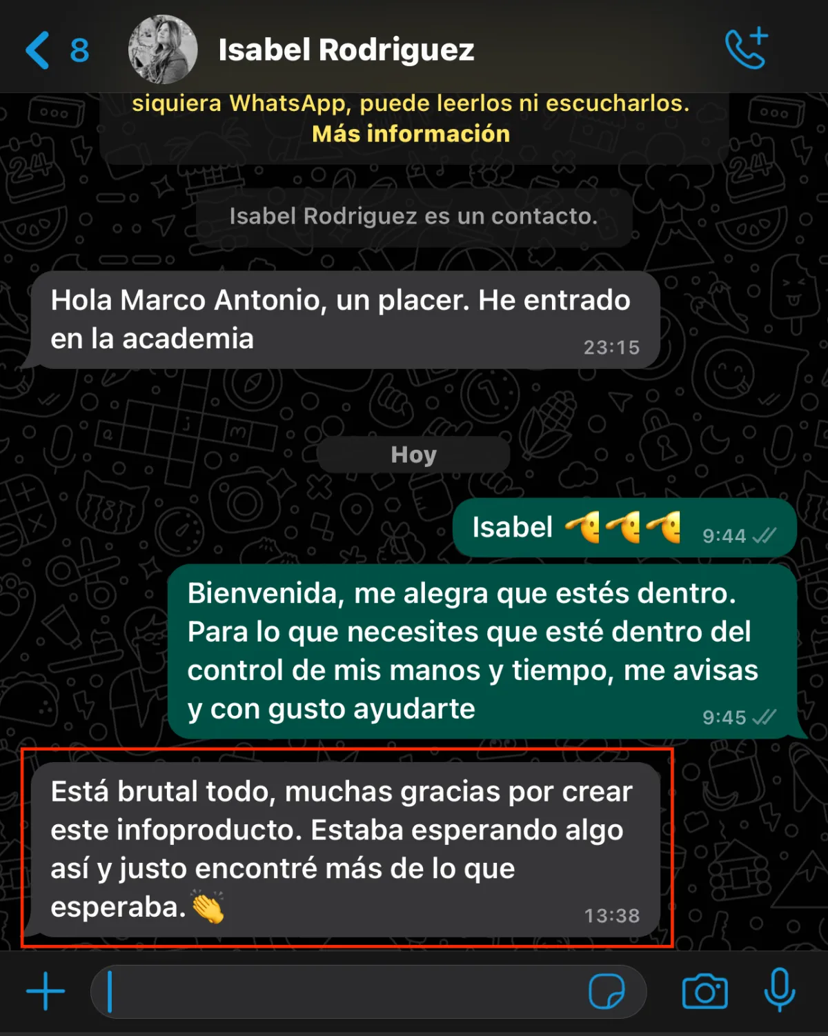 Sí, porque tendrás una bienvenida por WhatsApp y acceso directo a mi contacto (Marco Antonio).